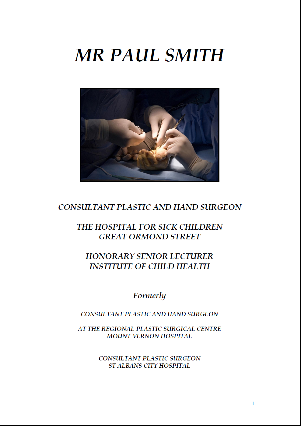 Please click on the image below for Paul Smith FRCS Curriculum Vitae: